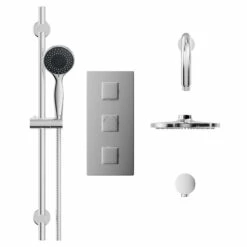 Looking for the ultimate shower in the comfort of your own home? Our Circo Triple Thermostatic Valve With Round Shower Head & Tyne Slide Rail Kit offers an unbeatable shower experience.